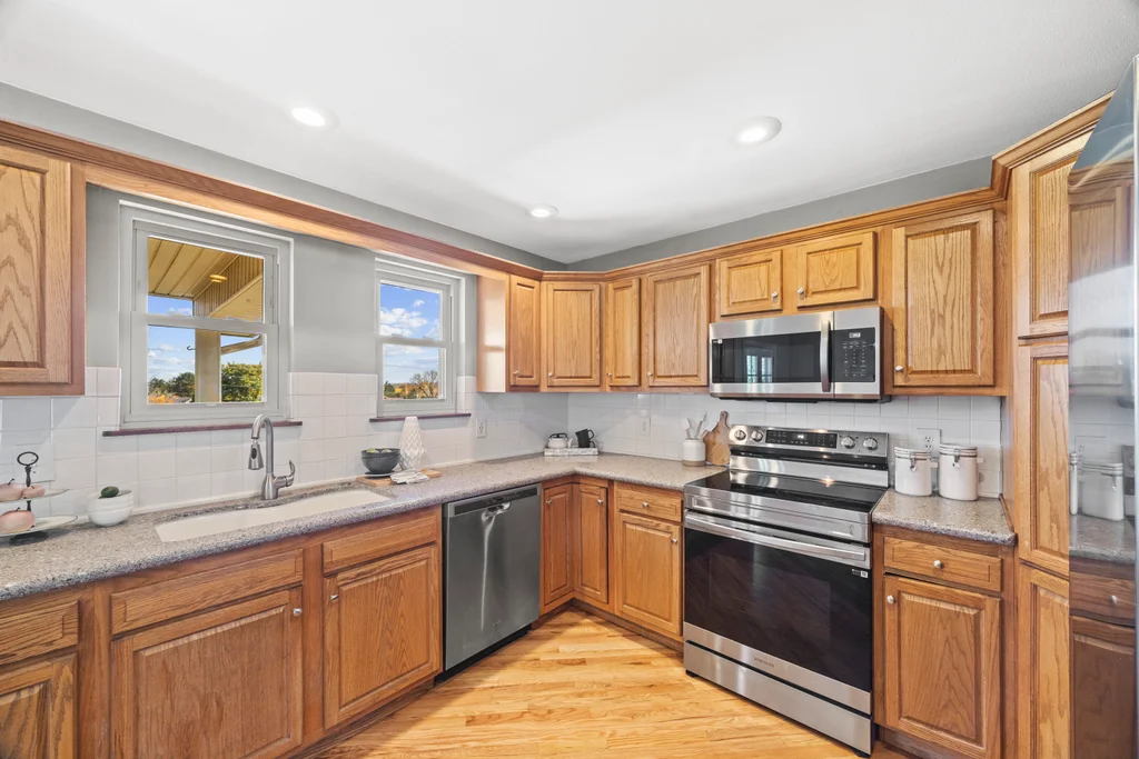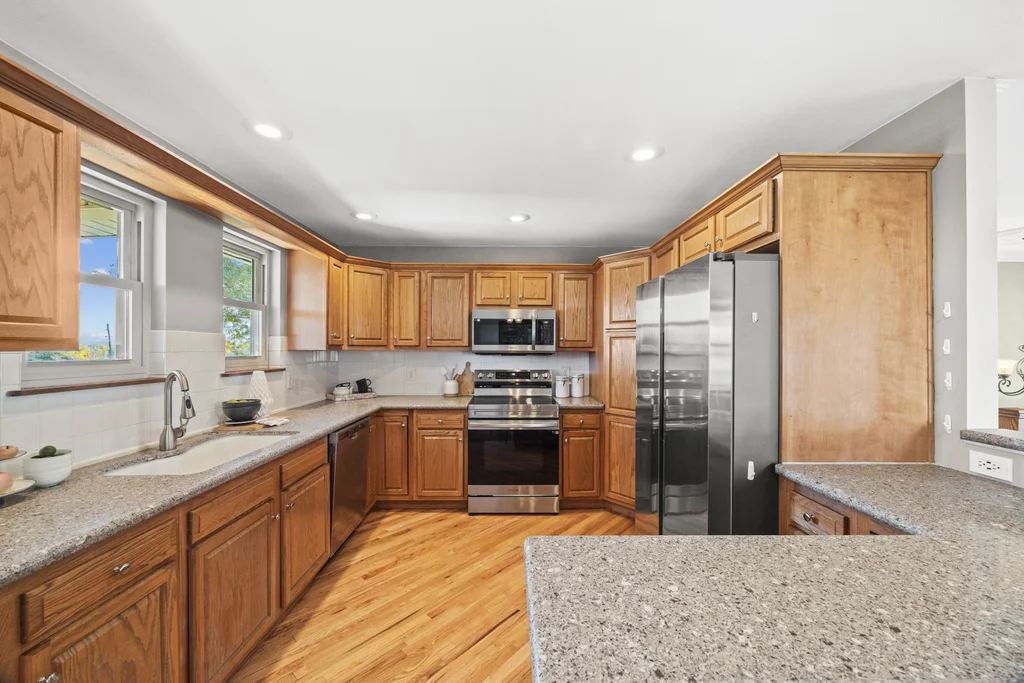 Welcome to a beautifully updated custom split-level home on a large half-acre corner lot in the coveted Columbine Lakes/Three Ponds neighborhood. Step into a bright, welcoming foyer accented by a stained-glass transom window, wainscoting, and rich hardwood flooring. The open design leads upstairs to sunlit living and dining spaces with hardwood floors and large windows framing beautiful outdoor views. The remodeled kitchen features Silestone countertops, hardwood cabinetry with new hardware, and new Samsung stainless steel appliances (2025) on refinished hardwood floors. From the dining area, step out to a spacious covered deck—perfect for entertaining or quiet evenings enjoying Colorado’s weather. The main level includes a relaxing primary suite with a walk-in closet and remodeled ensuite bath featuring a seamless Euro glass shower, glass block accents, modern vanity, and updated lighting. Two additional bedrooms and a beautifully updated full hall bath with a jetted tub and new vanity complete this level. Downstairs, the walkout lower level is warm and inviting with another bedroom and a large family room centered around a painted brick gas fireplace. A separate room with a private entrance offers ideal space for a home office or study. The remodeled half bath and laundry room complete the lower level. Outside, the home is surrounded by mature landscaping, a full sprinkler system in front and back, & peach and apple trees. An oversized side-load two-car garage with southern exposure and extended driveway provide ample space for parking and play. Major updates include a new roof (2024), newer furnace with blower motor (2023), and hot water heater (2021). Enjoy walking distance to top-rated Wilder Elementary, the Columbine Trail, neighborhood ponds and parks, and optional access to the community pool/ clubhouse. Located minutes from Downtown Littleton, Aspen Grove, and with quick access to Denver and the mountains, this home offers the best of Colorado living.